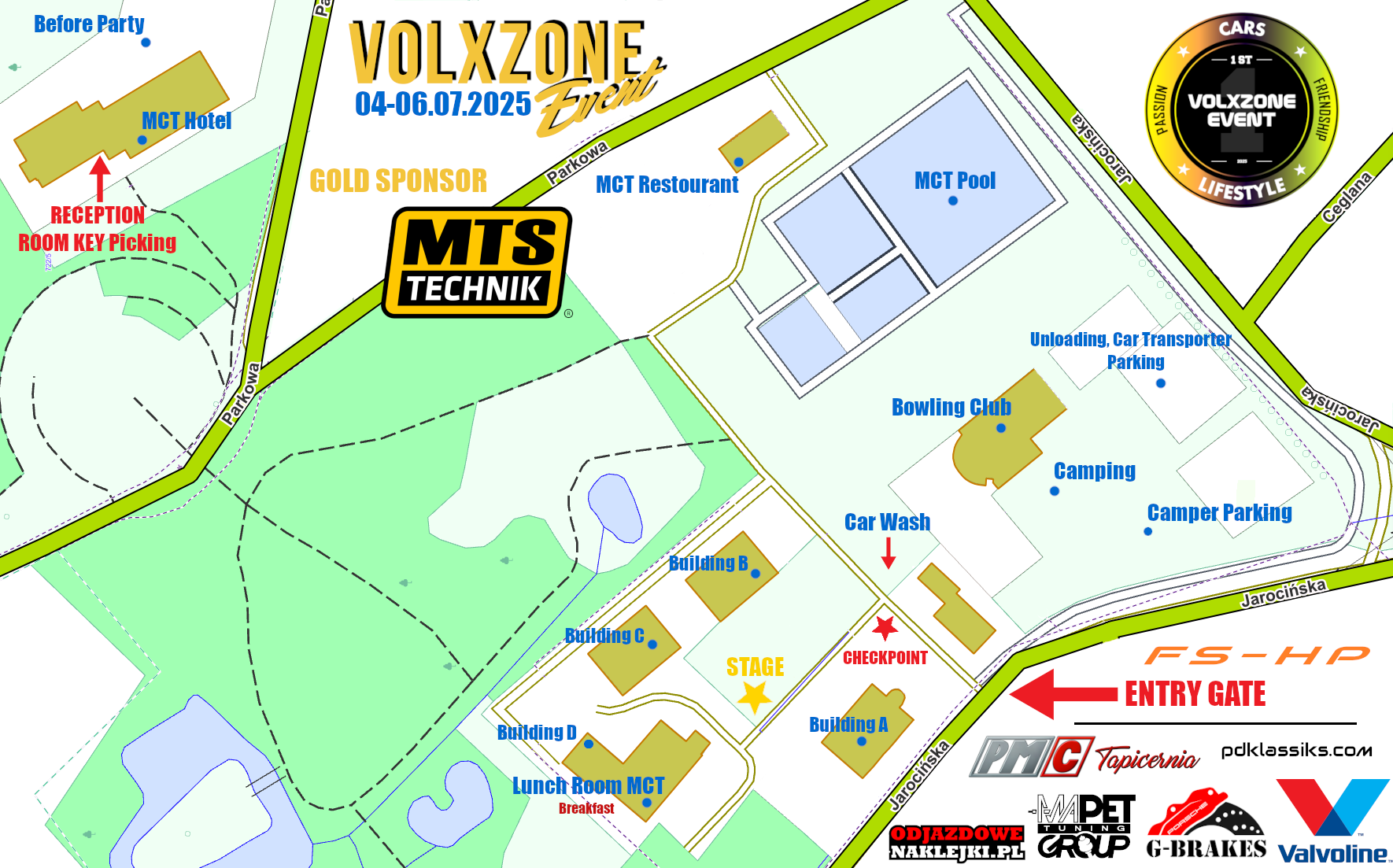 Regardless of the day you arrive, the collection of accommodation for people who have been accommodated on the MCT will take place at the RECEPTION OF THE MCT HOTEL (see map). All cars taking part in the Before Party at the MCT Hotel on Friday 04.07.2025 must be moved to the MC, where they will be set up. The gates in both locations are closed at night, and security is on duty to ensure safety. We reserve the right to make changes to the schedule and modify the regulations at any time if necessary.